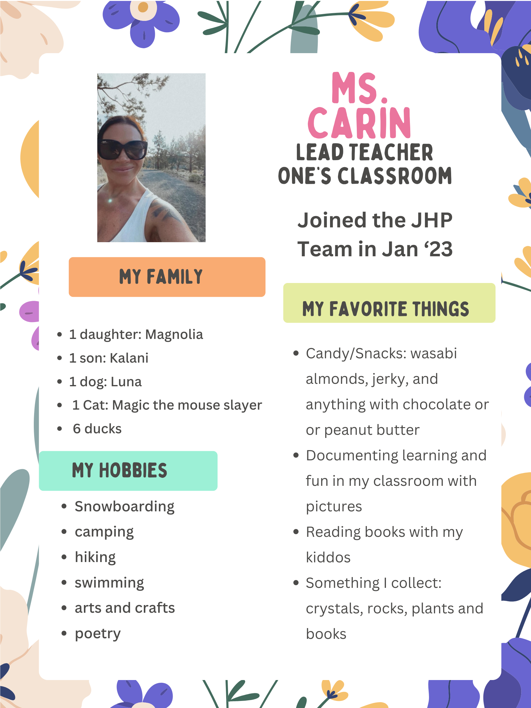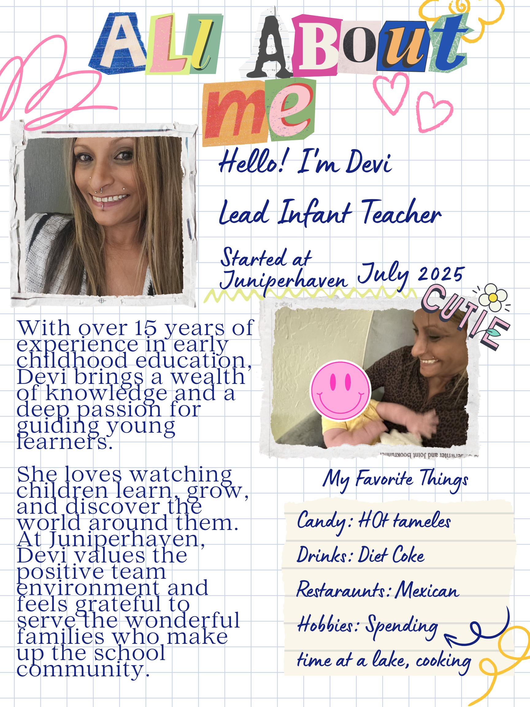 I love what I do. I love greeting the kids each morning, working alongside my amazing team, and getting to know every family that walks through our doors. My hope is that when you walk into Juniperhaven, you feel the same joy, purpose, and connection that we do every day.